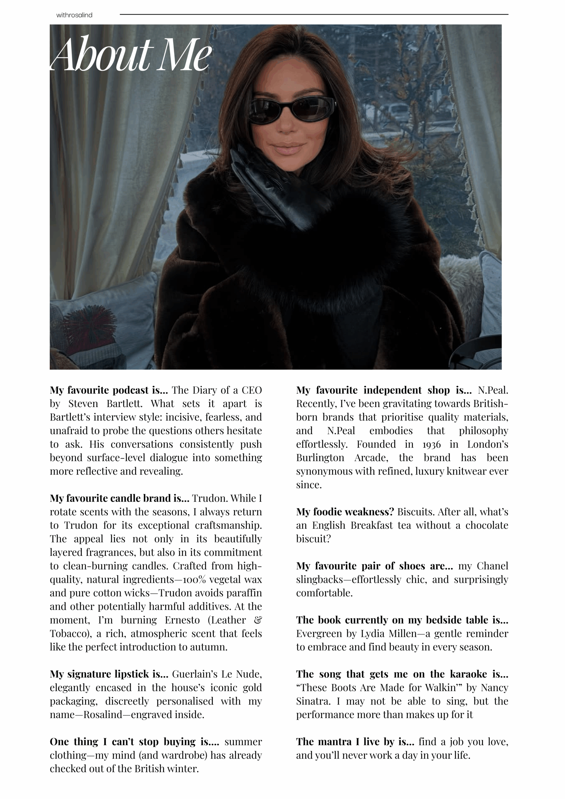 Links: The Diary of a CEO podcast, Trudon Ernesto candle, Guerlain Le Nude lipstick, N.Peal website, Chanel slingbacks and Evergreen by Lydia Millen.